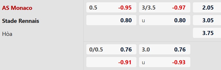 Thông tin tỷ lệ kèo bóng đá Monaco vs Rennes: