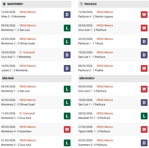 Ở phía đối diện, Pachuca lại đang có phong độ hoàn toàn trái ngược. Họ bất bại 6 vòng gần nhất, trong đó thắng tới 4 trận. Đáng chú ý, hàng công của Pachuca thi đấu rất hiệu quả với nhiều trận ghi từ 2 bàn trở lên, giúp họ duy trì vị trí trong nhóm đầu bảng.