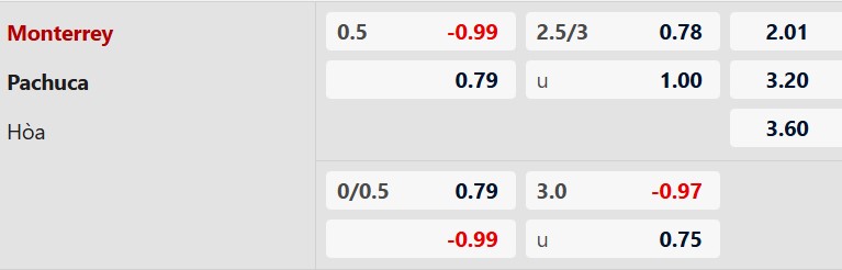 Thông tin tỷ lệ cược Monterrey vs Pachuca: