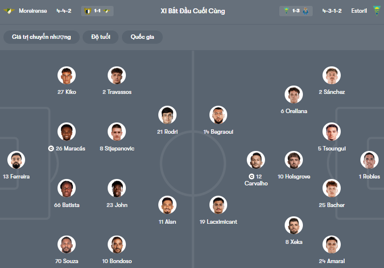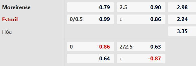 Việc Estoril nằm cửa trên với mức chấp 1/4 ngay trên sân khách chủ yếu dựa vào vị thế nhỉnh hơn trên bảng xếp hạng. Tuy nhiên, cần lưu ý rằng Estoril cũng đã thua kèo ở 3 vòng đấu gần nhất. Trong một trận đấu "vô thưởng vô phạt", lợi thế sân nhà có thể giúp Moreirense giữ lại được 1 điểm. Mức kèo chấp này cho thấy cửa khách không thực sự đáng tin.