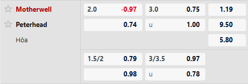 Thông tin tỷ lệ Motherwell vs Peterhead: