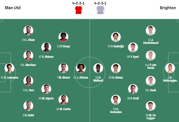 Thông tin lực lượng MU vs Brighton: