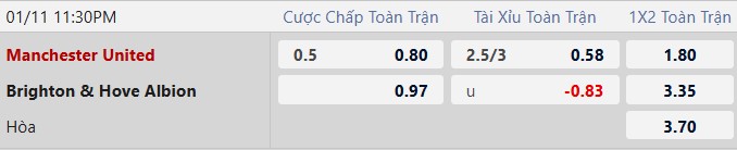 Thông tin tỷ lệ kèo bóng đá MU vs Brighton: