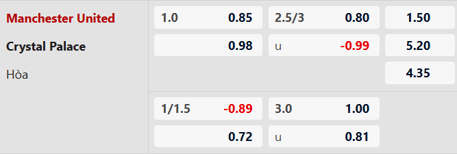 Thông tin tỷ lệ kèo bóng đá MU vs Crystal Palace: