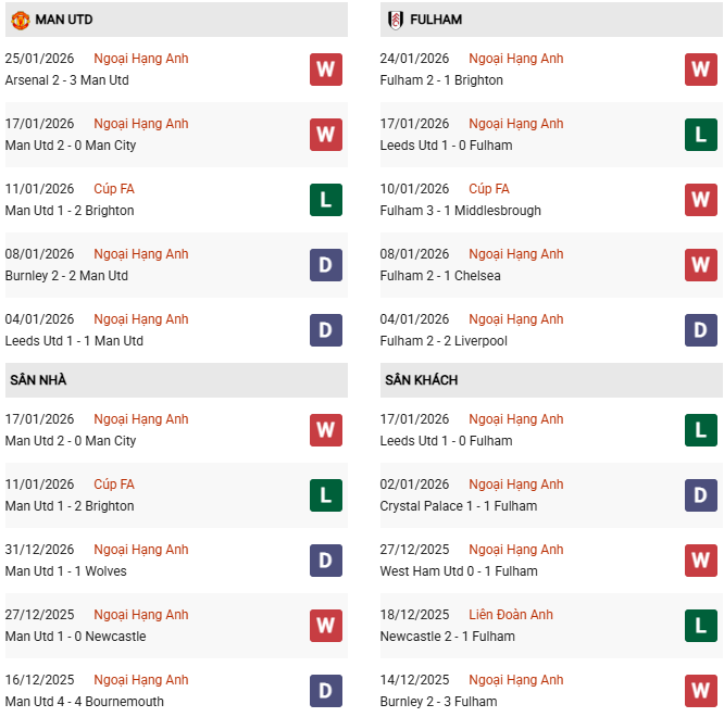 - Trên sân nhà, MU thắng 6, thua 1 trước Fulham.