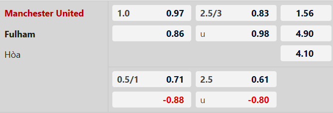 Thông tin tỷ lệ kèo bóng đá MU vs Fulham: