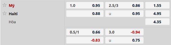 Thông tin tỷ lệ bóng đá Mỹ vs Haiti: