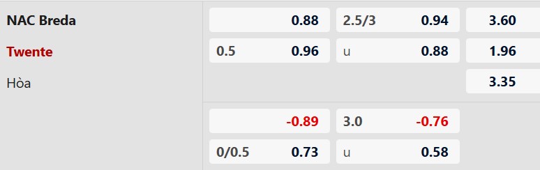 Mùa này, Twente mới có 1 trận sân khách duy nhất không thủng lưới trong khi NAC Breda trên sân nhà thường xuyên biết cách ghi bàn dù kết quả tổng thể không tốt. Cộng thêm dự đoán Twente thắng trận thì 90 phút sắp tới nhiều khả năng tối thiểu chạm được ngưỡng 3 bàn chung cuộc, giống như 3/5 màn so tài mới đây giữa hai đội.