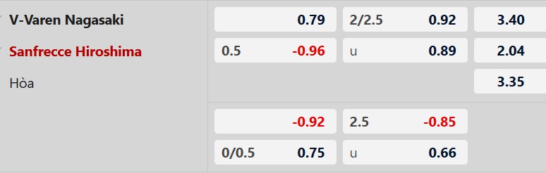 Thông tin tỷ lệ bóng đá Nagasaki vs Hiroshima: