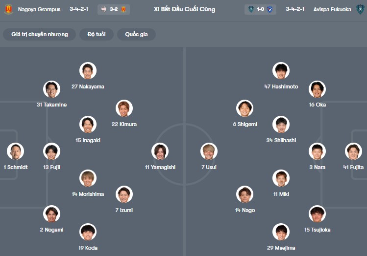 Đội hình dự kiến Nagoya vs Avispa Fukuoka: