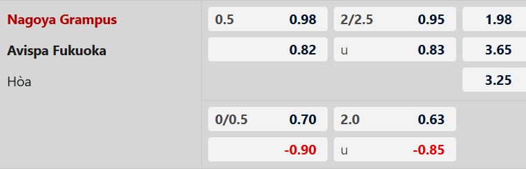 Thông tin tỷ lệ Nagoya vs Avispa Fukuoka: