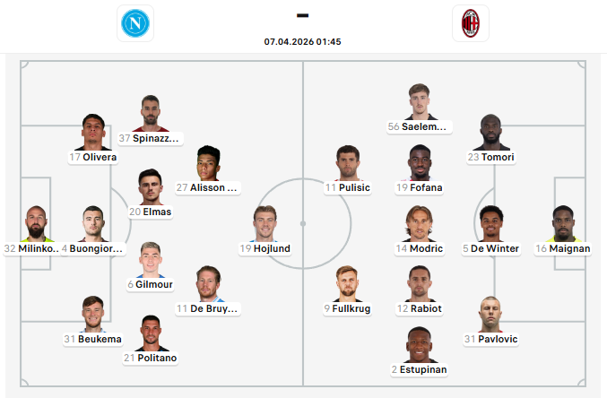 Đội hình dự kiến Napoli vs AC Milan: