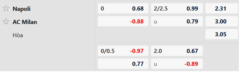 Soi kèo châu á Napoli vs AC Milan: