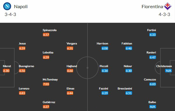 Đội hình dự kiến Napoli vs Fiorentina: