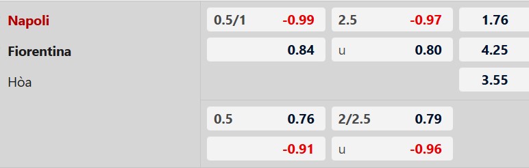 Soi kèo châu Á Napoli vs Fiorentina:
