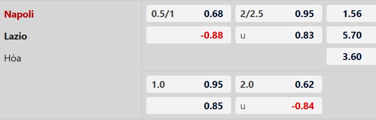 Thông tin tỷ lệ kèo bóng đá Napoli vs Lazio: