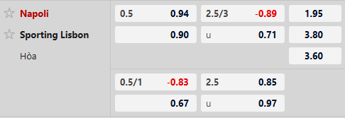 Soi kèo tài xỉu Napoli vs Sporting Lisbon: