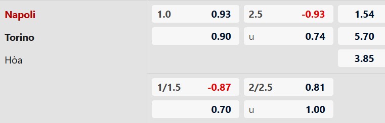 Thông tin tỷ lệ bóng đá Napoli vs Torino:
