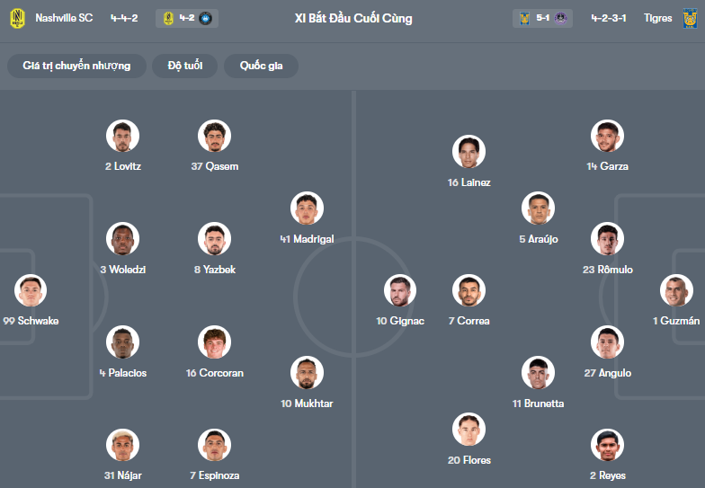 Đội hình dự kiến Nashville vs Tigres UANL: