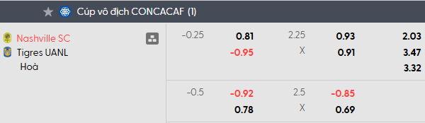 Thông tin tỷ lệ Nashville vs Tigres UANL: