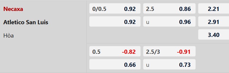 Thông tin tỷ lệ Necaxa vs San Luis:
