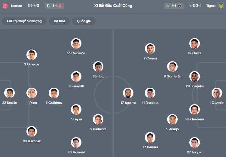 Đội hình dự kiến Necaxa vs Tigres UANL:
