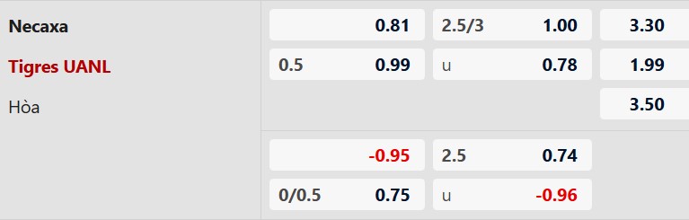 Thông tin tỷ lệ Necaxa vs Tigres UANL: