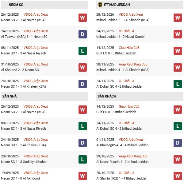 Thống kê phong độ Neom vs Al Ittihad: