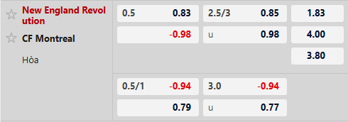 Thông tin tỷ lệ New England vs CF Montreal: