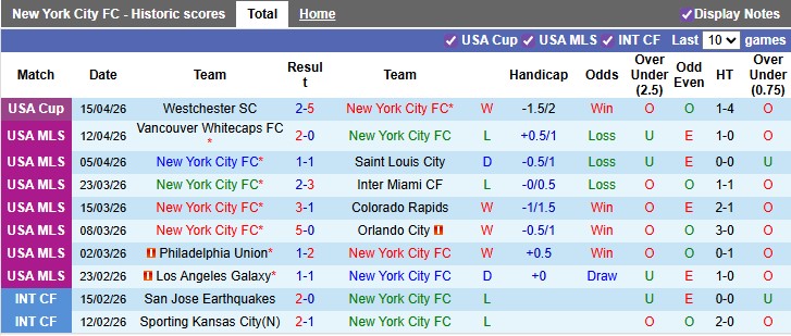 - Trên sân nhà, New York City thắng 2, thua 1 trước Charlotte.