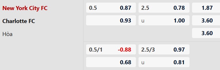 Nhận định kèo tài xỉu New York City vs Charlotte: