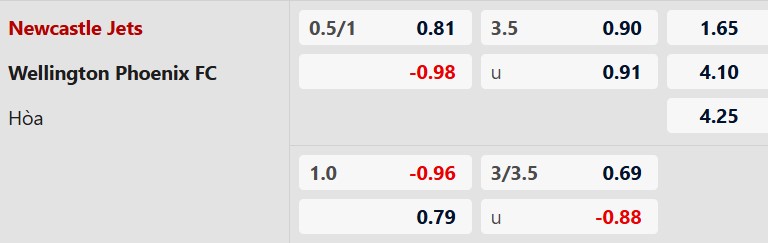Soi kèo châu Á Newcastle Jets vs Wellington: