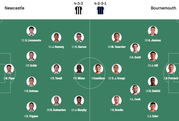 Thông tin lực lượng Newcastle vs Bournemouth: