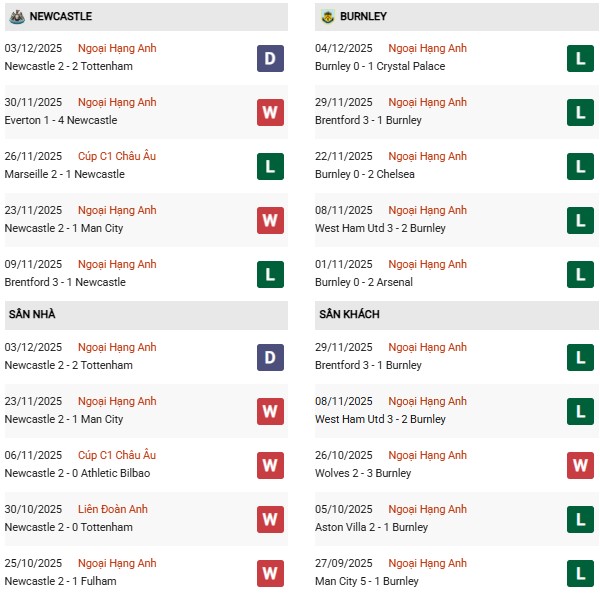 Newcastle bước vào trận đấu này sau trận hòa 2-2 trước Tottenham Hotspur. Phong độ gần đây của Newcastle cũng rất ổn định: họ bất bại trong 4 trận sân nhà gần nhất và chưa thua Burnley trong 7 lần đối đầu gần đây tại Premier League.