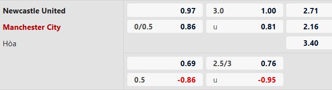 Thông tin tỷ lệ kèo bóng đá Newcastle vs Man City: