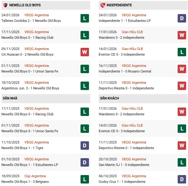 Thành tích đối đầu Newell's Old Boys vs Independiente gần đây hoàn toàn nghiêng về đội chủ nhà. Trong 4 lần gần nhất đôi bên gặp nhau, Newell's Old Boys thắng 3 và chỉ thua 1 trận. Kết quả hoàn toàn có thể tiếp diễn, khi Newell's Old Boys chơi trên sân nhà.