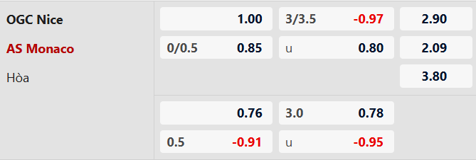 Thông tin tỷ lệ kèo Nice vs Monaco: