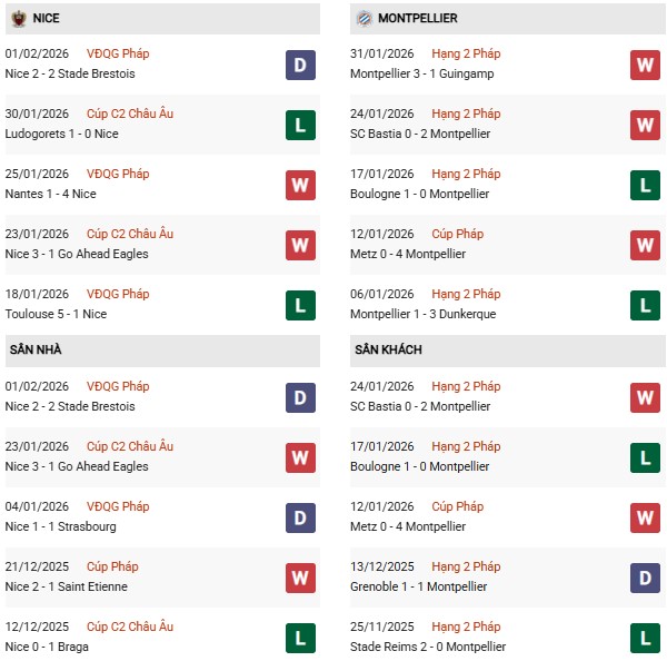 - Trên sân nhà, Nice thắng 8, thua 2 trước Montpellier.