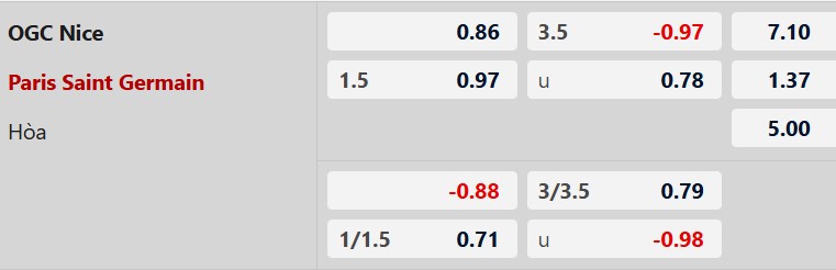 Thông tin tỷ lệ kèo bóng đá Nice vs PSG: