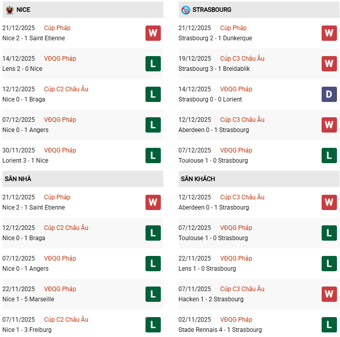 - Trên sân nhà, Nice thắng 5, thua 3 trước Strasbourg.