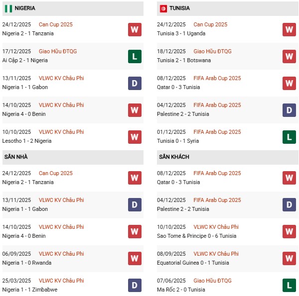 - Nigeria thắng 1, thua 1 trong 8 trận đối đầu Tunisia gần đây.