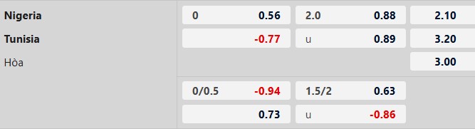 Thông tin kèo bóng đá Nigeria vs Tunisia: