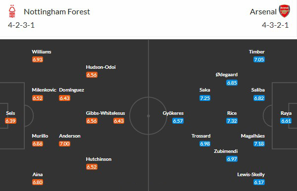 Đội hình dự kiến Nottingham vs Arsenal: