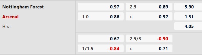 Thông tin tỷ lệ kèo bóng đá Nottingham vs Arsenal: