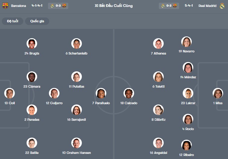 Đội hình dự kiến Nữ Barcelona vs Nữ Real Madrid: