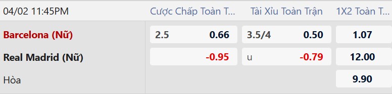 Soi kèo châu Á Nữ Barcelona vs Nữ Real Madrid: