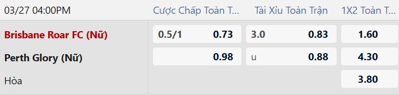Thông tin tỷ lệ Nữ Brisbane Roar vs Nữ Perth Glory: