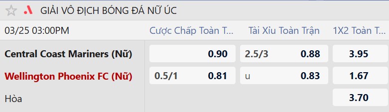 Soi kèo tài xỉu Nữ Central Coast vs Nữ Wellington: