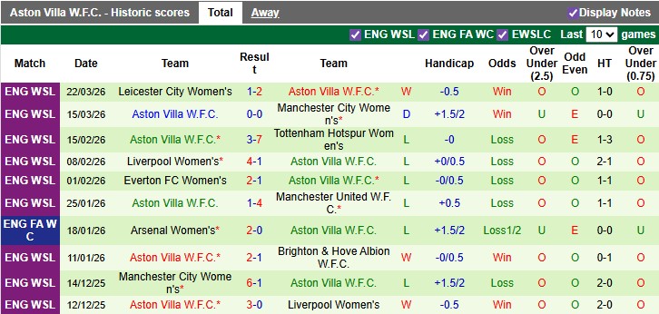 Ở phía bên kia, Nữ Aston Villa đang xếp thứ 8 với 20 điểm – vị trí khá an toàn nhưng cũng khó có cơ hội cạnh tranh top đầu. Phong độ của họ thời gian qua là không thực sự ổn định.