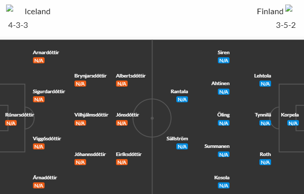 Đội hình dự kiến Nữ Iceland vs Nữ Phần Lan: